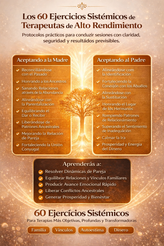 Herramientas prácticas para desbloquear patrones familiares, liberar bloqueos emocionales y fortalecer vínculos, incluso en casos complejos.